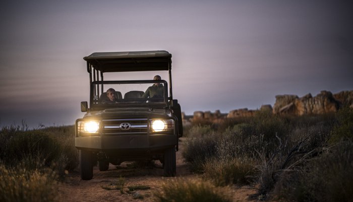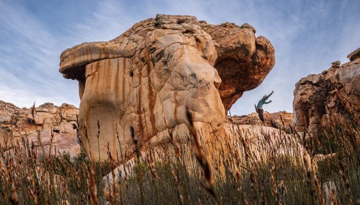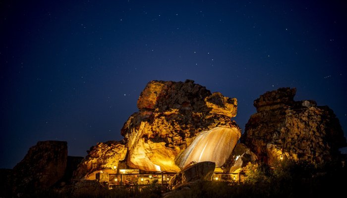 Midway between the Cederberg and Ceres-Karoo, at the end of a meandering gravel road, a place of absolute tranquillity awaits. This space of convoluted sandstone and restios fields is Kagga Kamma Nature Reserve, named aeons ago by hunter-gatherer tribes as the “place of water”.