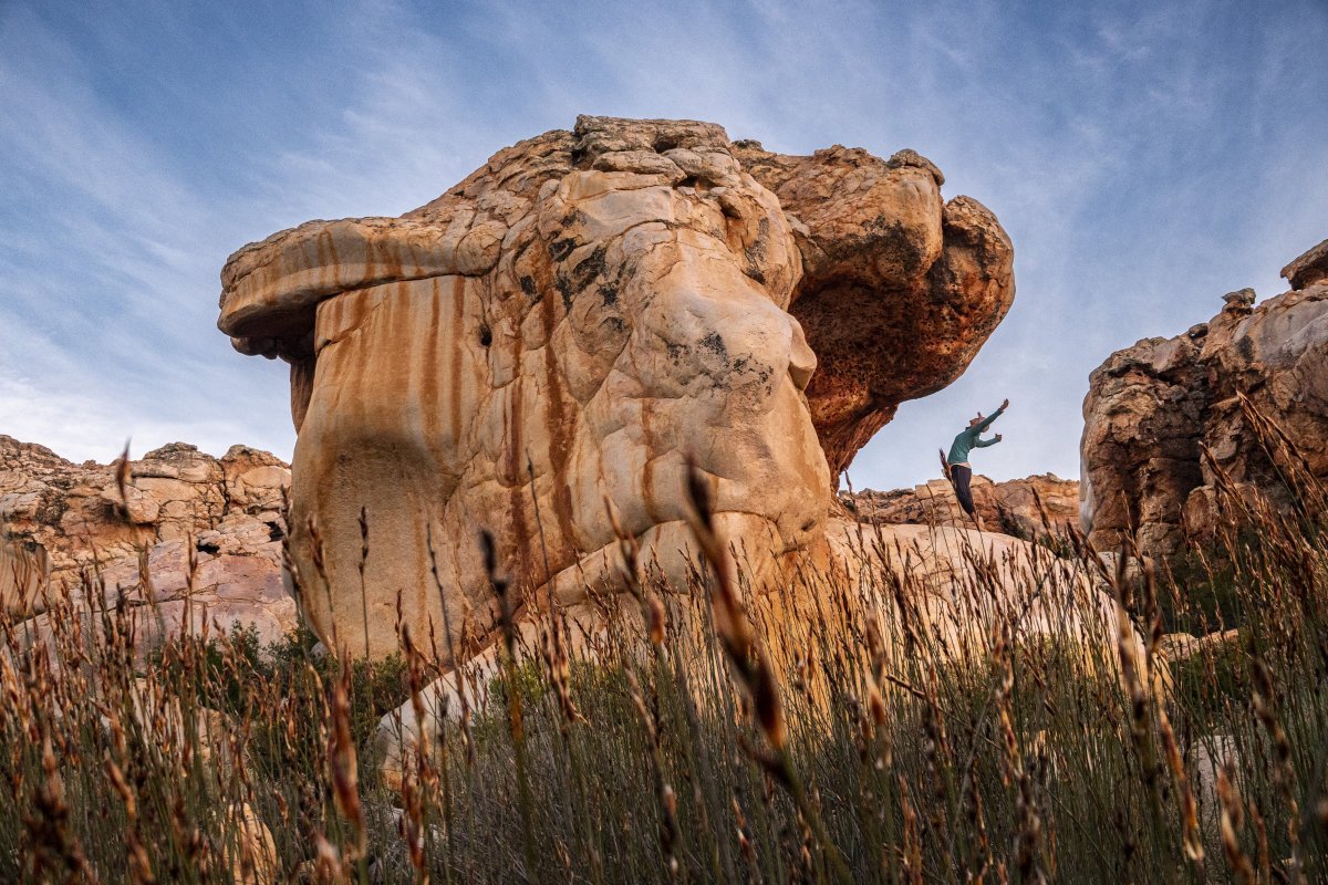 The ecosystem here is shaped by an enthralling mix of biomes, blending karroid and arid fynbos vegetation. An arid and treeless landscape equated to harsh conditions, but the near-endless views across the minimalist plains would surely have enthralled the early inhabitants of this land.