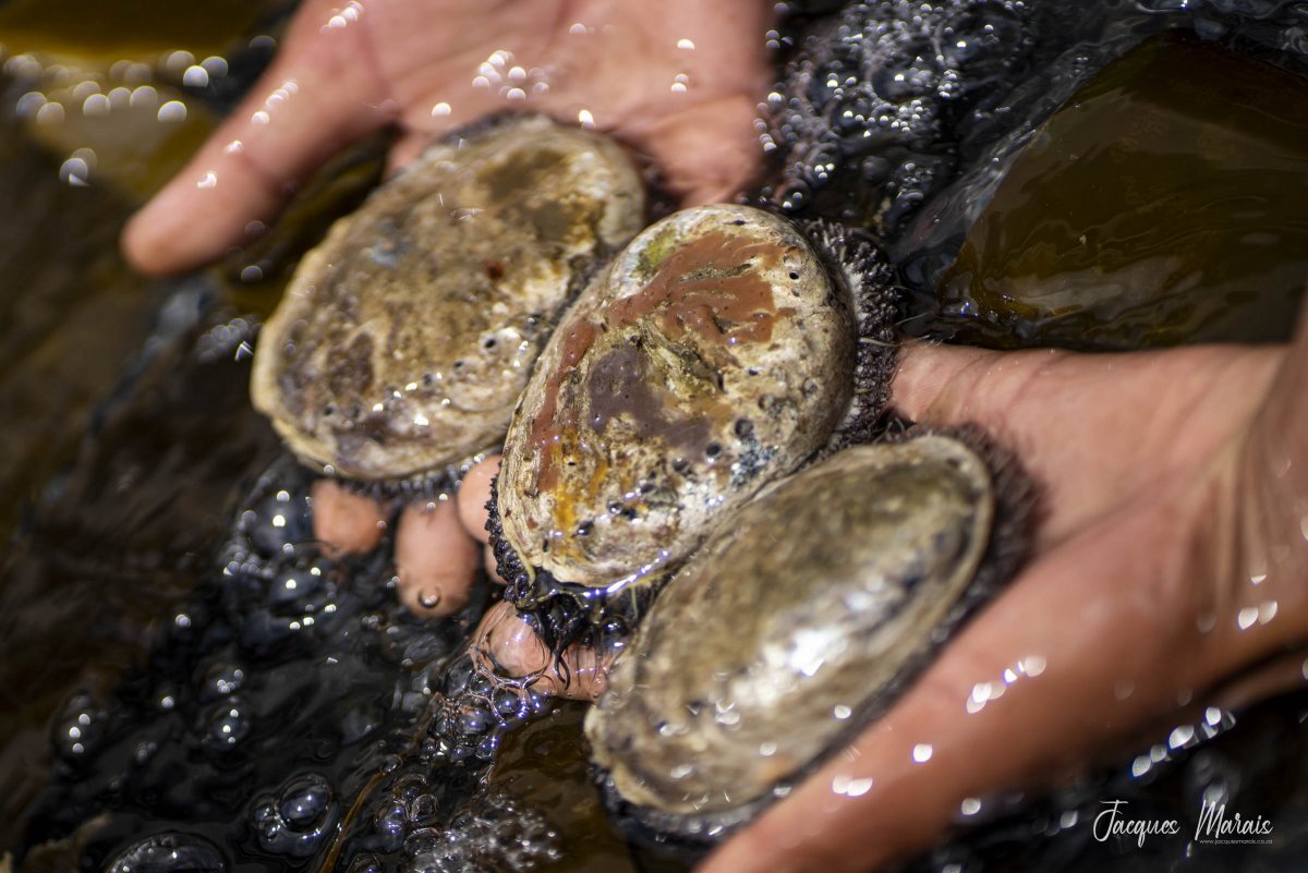 One of the marine species which helped sustain them was abalone, a mollusc known as haliotis midae. This simple herbivore subsists on bits of kelp and other seaweeds, not only filtering the ocean water, but also “vacuuming” the ocean floor.